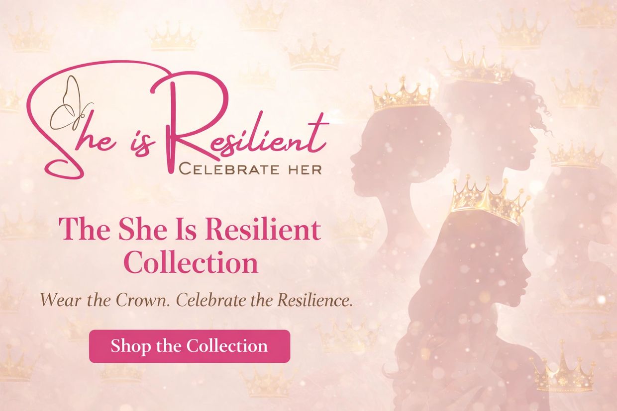 The She Is Resilient movement was created to honor women who continue to rise, even when life gets difficult. Every crown represents strength. Every piece represents resilience. This collection was created so women everywhere can carry that reminder with them daily.